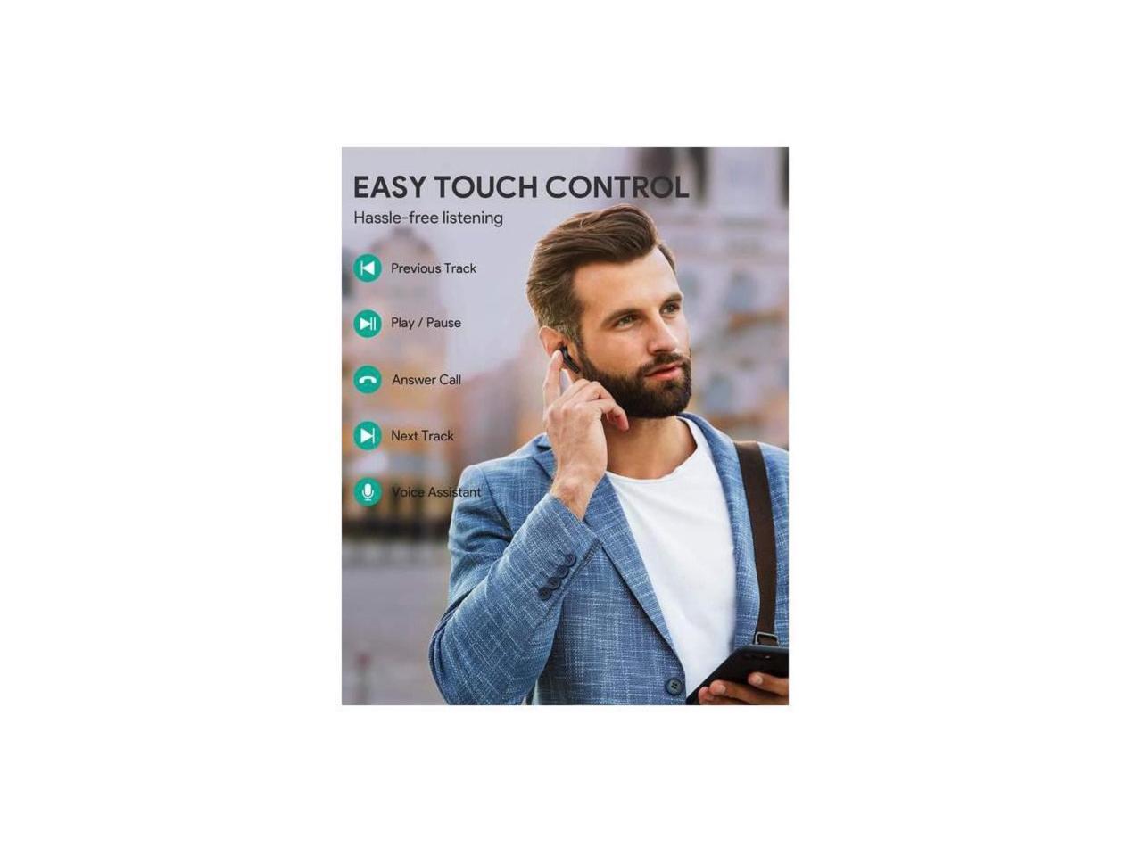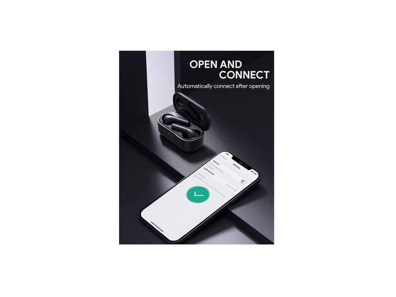AUKEY True Wireless Earbuds with 10mm Drivers, Hi-Fi Stereo Sound, Charging Case, Bluetooth, Touch Control, Waterproof IPX6, for iPhone Android Black EP-T21P