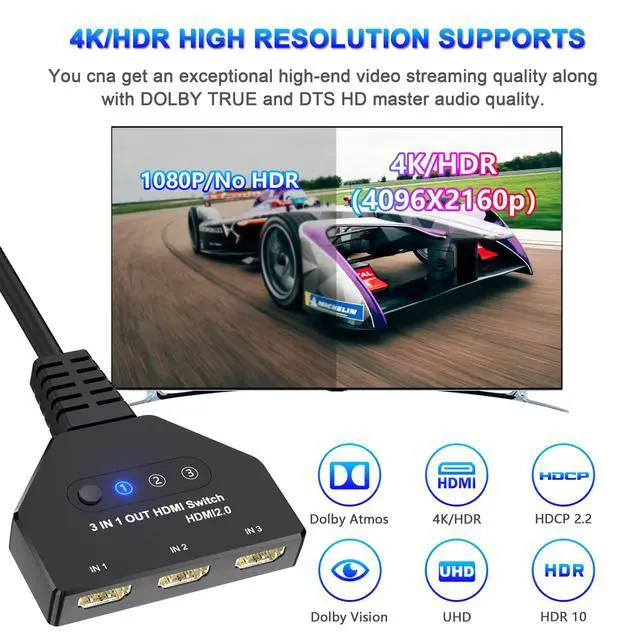 This HDMI Switch 4K is easy to set up and operate. It’s portable design saves space and time for your entertainment.