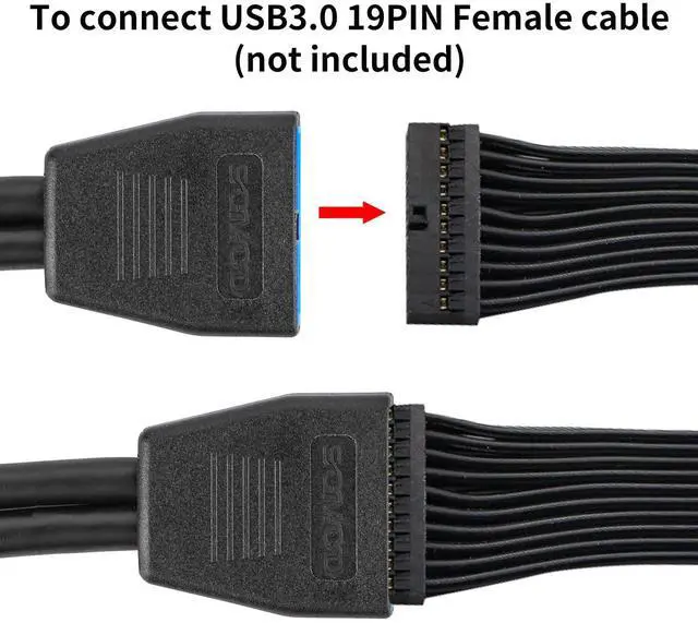[Plug-and-play Setup]"USB 3.0 19/20 Pin Male Port" to convert USB 3.0 Female cable, "Dual USB A Ports" to connect USB devices. The flexible PVC jacket improves bend resistance.