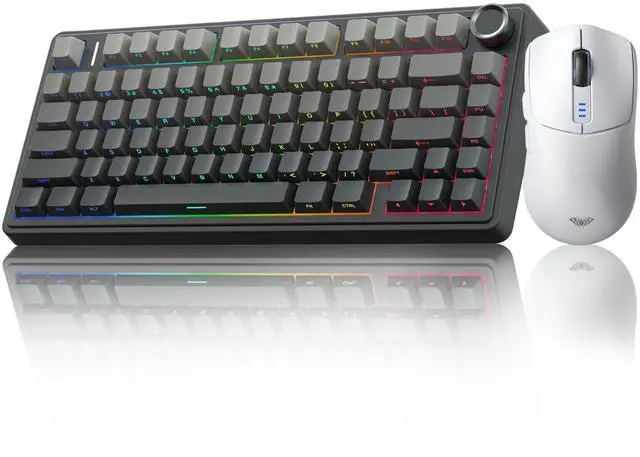 Wireless Keyboard and Mouse Combo,AULA F75 Pro Wireless Mechanical Keyboard,75% Gasket Hot Swappable Custom Keyboard+SC580 Wireless Gaming Mouse White