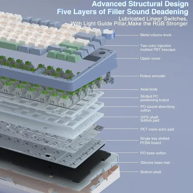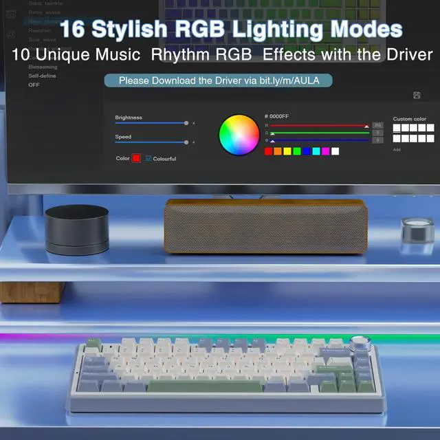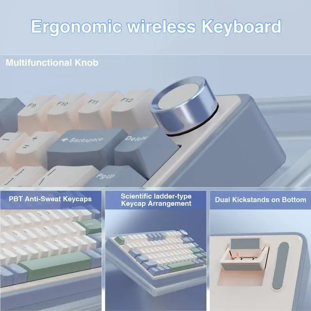 - Multi-function Control Knob: This AULA 75% wireless gaming keyboard is equipped with functional knob to switch gaming mode or office mode. In gaming mode, you can rotate the knob to adjust the brightness of the lights, and click the knob to switch the lighting effects easily; in office mode, rotate the knob to adjust the volume, and click the knob to play or pause. Long press the knob for about 5 seconds to switch modes