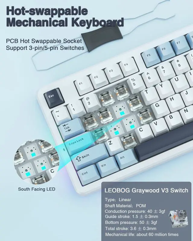 - TKL Compact Keyboard & Excellent Quality: This 75% keyboard saves 25% desktop space while retaining the function keys and arrow keys for a more efficient office and smoother gaming experience. The PBT keycaps are super sweat and slip resistant for durability. F87 usb keyboard comes with a high capacity 4000mAh battery for a full day of daily use. With a lifespan of more than 60 million keystrokes, the wireless keyboard ensures stability and smoothness for years of use