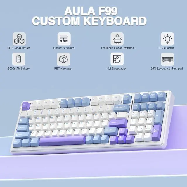 Wireless Keyboard and Mouse Combo, F99 Wireless Mechanical Keyboard Hot Swappable Custom Keyboard+SC580 Wireless Gaming Mouse White