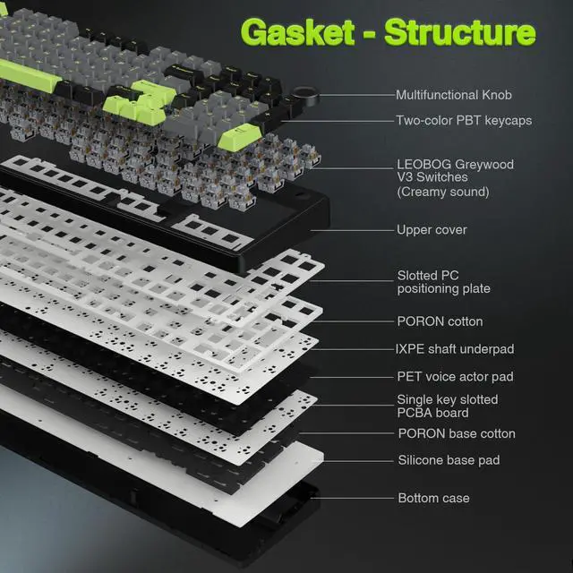 3. Hot swappable creamy keyboard, support 3 pins/5 pins switches;