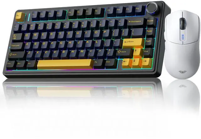 Gaming Keyboard and Mouse Combo, 75% Wireless Mechanical Keyboard, Gasket Hot Swappable Custom Keyboard+SC580 Wireless Gaming Mouse White