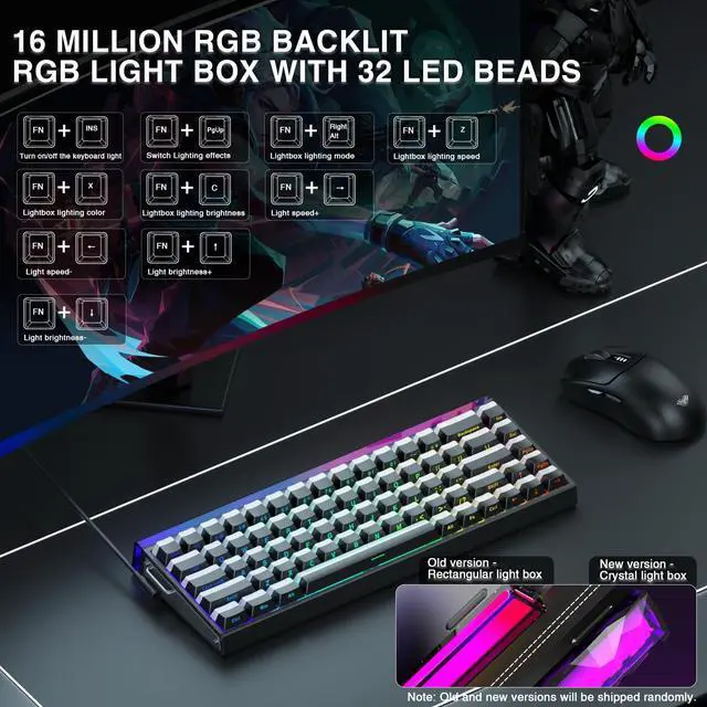 - Personalized Lightbox Design & RGB Backlit: The rgb lightbox design on the front side is so cool and gives you an immersive gaming experience. The light up keyboard features 16.8 million colors of rgb lighting effects with south-facing LEDs for a better visual experience. 20 lighting effects add a great ambience to games. Lighting effects and brightness can be easily adjusted via driver or FN and key combinations. The backlight can be turned off if not needed