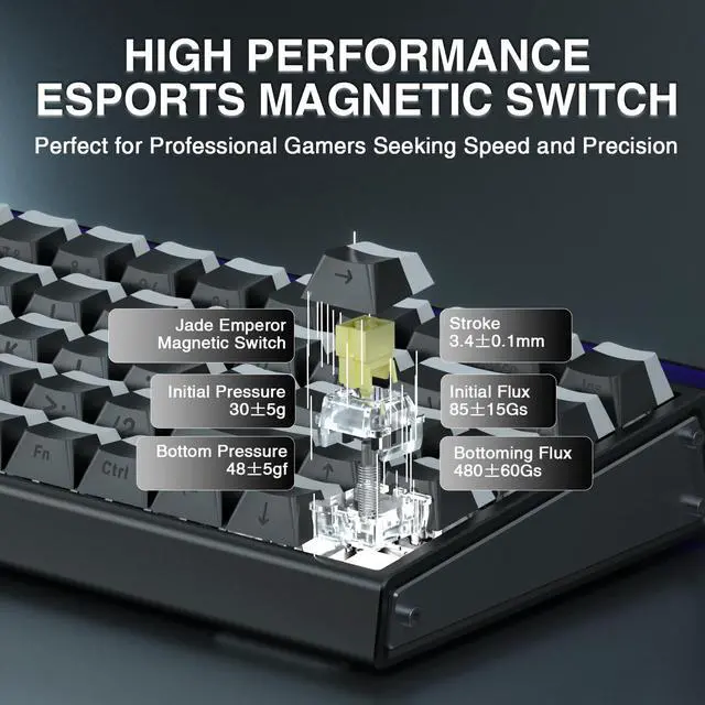 - 60% Wired Gaming Keyboard: No matter the outlook, the construction, or the function, this fast trigger keyboard is definitely a professional gaming keyboard. This 68-key 60% layout compact keyboard can save more desktop space while retaining the necessary arrow keys for gaming. USB-C wired mode provides gamers with a more stable connection and greatly enhances the gaming experience.