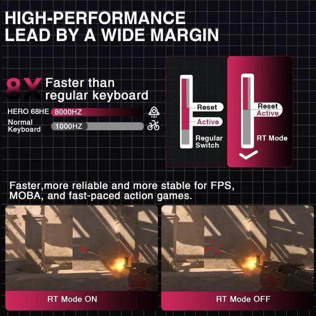 Hero 68 HE 60% Gaming Keyboard Wired, Hall Effect Magnetic Switch Keyboard with 8K Hz Polling Rate, Side Printed PBT Keycaps, RGB Light Box, Customizable Web Software for PC/Mac Gamers(Black)