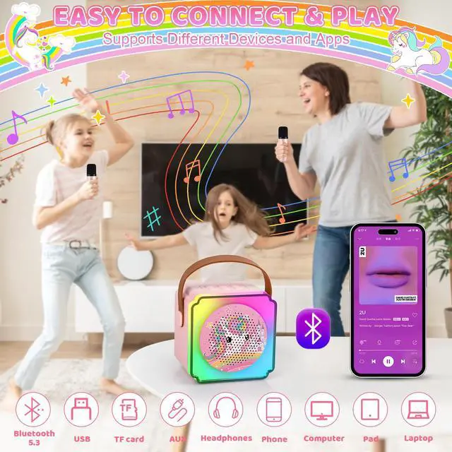 Surprisingly powerful volume and premium sound quality will make you feel like a star on stage! Your princess will love this cute unicorn toys!