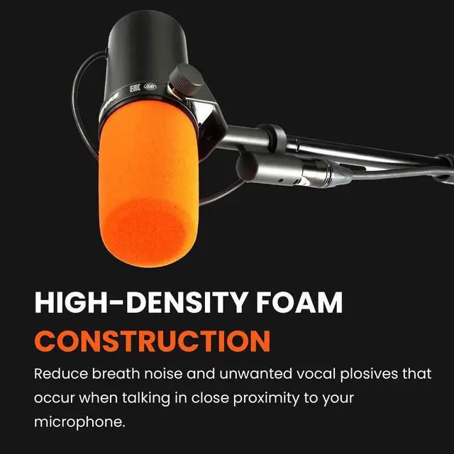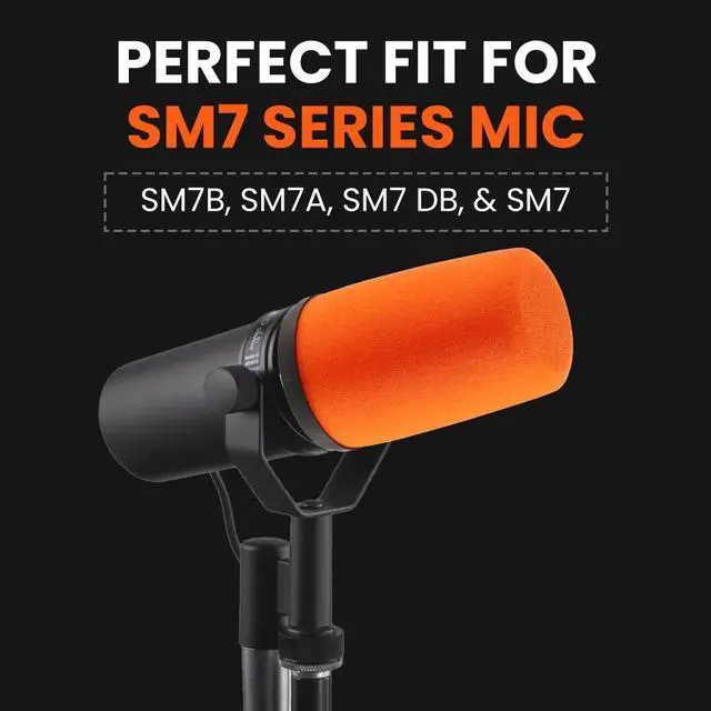 Upgrade Your Shure SM7 Microphone: Enhance your Shure SM7B, SM7A, SM7 dB, or SM7 mic with the striking orange Auray high-density foam replacement windscreen. Specifically crafted to fit perfectly, this windscreen features a secure snap-on attachment that keeps it firmly in place during any broadcast or recording session.
