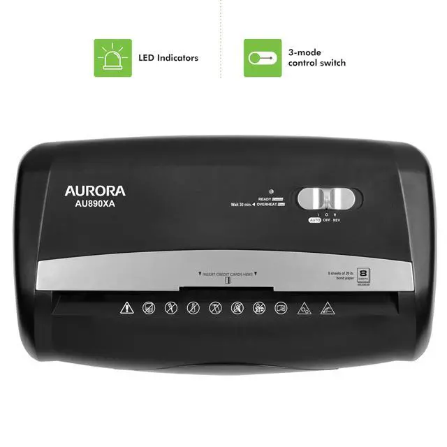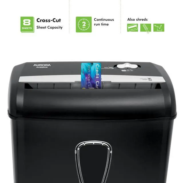 Aurora AU890XA 8-Sheet Crosscut Paper/Credit Card Shredder, Security P-3 Shred Size