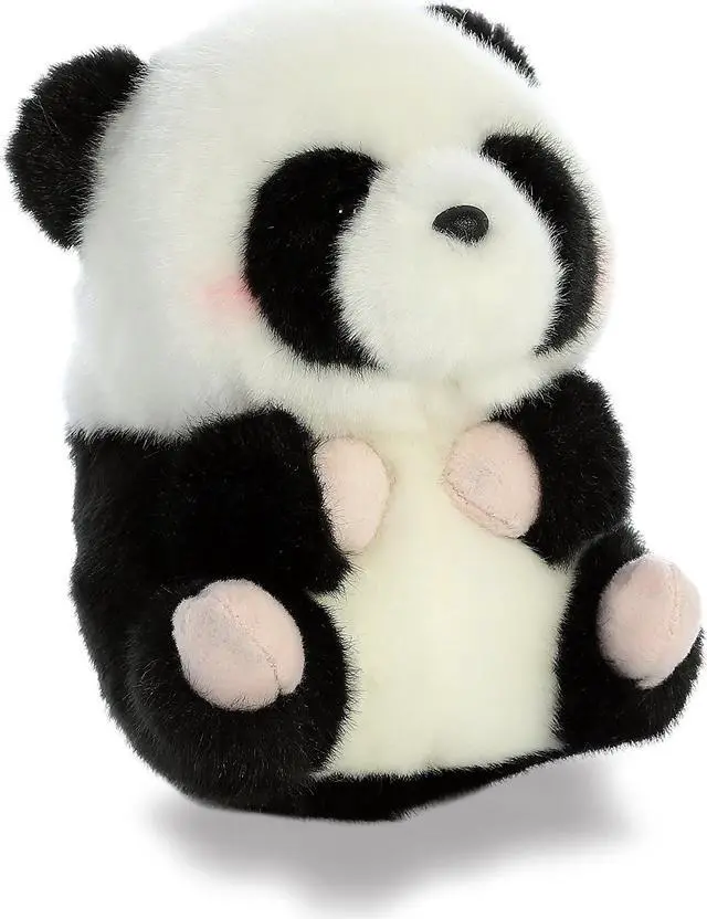 Rolly Pets are round, fun-sized animal pals designed to be plumped up with cuteness at a small size point. Precious Panda is a classic panda bear plush with black and white coloring throughout. With Rolly Pets small size, you can carry your panda plush with you on every journey ahead as your perfect animal partner.