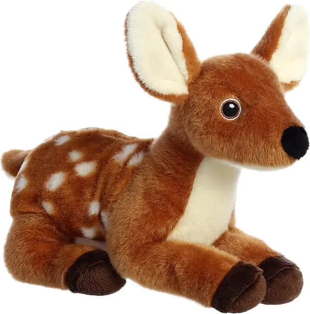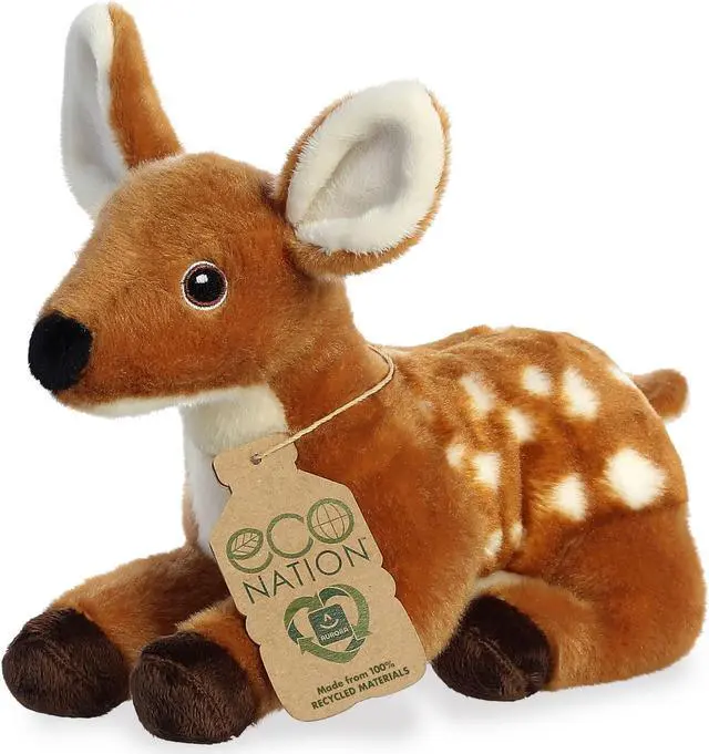 Crafted to perfection with its warm brown coat and white spots, this Fawn Plush from the Eco-Nation collection brings a touch of woodland whimsy right into your living space. Its fabric, lovingly made from 100% recycled plastic bottles, offers a super-soft, high-quality cuddle experience that's both eco-conscious and guilt-free. Embroidered eyes twinkle with charm and sustainability, steering clear of any plastic and emphasizing its dual role as both adorable and good for the Earth. Whether you're searching for a gift that speaks to nature lovers or simply want to add a fairytale touch to your surroundings, this Fawn Plush serves as a meaningful and magical addition.