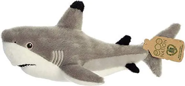 This Blacktip Shark Plush sports a sleek grey and white body accented by eye-catching black-tipped fins, offering all cuddles and no bite to shark enthusiasts of all ages. With fabric crafted from 100% recycled plastic bottles, each hug is a sustainable swim in harmony with Mother Earth. The plush features captivating, embroidered eyes that are not just heartwarming but also eco-friendlyno plastic buttons, just a gaze as gentle as the ocean breeze. Ideal for Shark Week, birthdays, or any day in between, this plush is the perfect catch for those looking to make waves in gift-giving. To take your eco-friendly underwater adventures to the next level, pair it with other sea creatures from the Eco-Nation line.