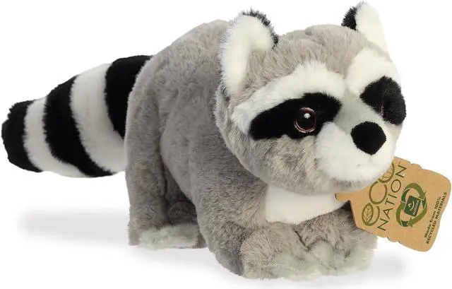 With its soft, high-quality fabric perfect for snuggles and a mischievous demeanor that captures hearts, this Raccoon plush is both adorable and eco-friendly. With fabric crafted from 100% recycled plastic bottles, each cuddle contributes to a greener planet, letting you embrace eco-conscious comfort. Its eyes are embroidered for an expressive gaze that says, "I'm cute, and I care," setting a new gold standard in eco-friendly plush design. A versatile gift suitable for birthdays, baby showers, or just to express eco-love, this plush raccoon serves as more than just a toyit's a conversation starter that educates young minds about wildlife conservation, recycling, and environmental care.