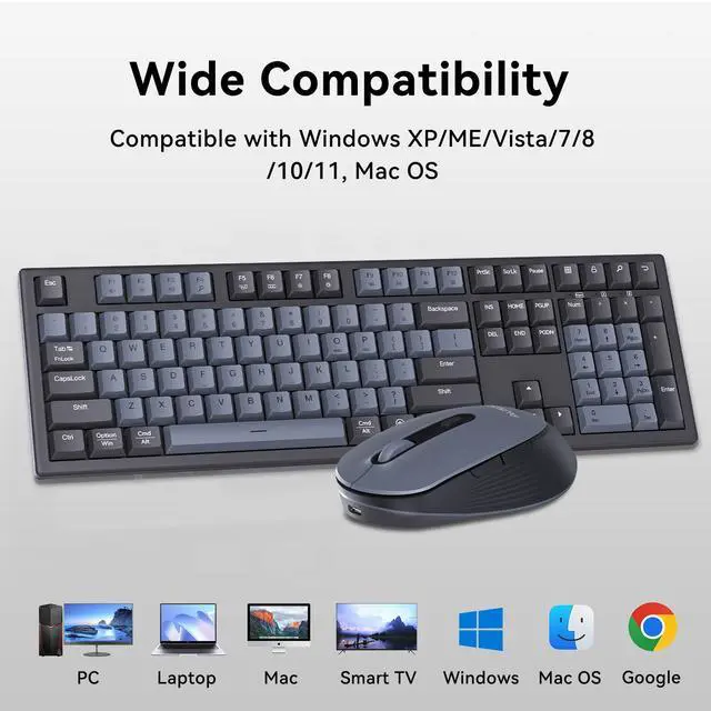 AUSDOM KAM200X Wireless Keyboard and Mouse Combo - 108 Keys Mechanical Feel, 2.4G Full-Sized Rechargeable Silent Keyboard & 3 DPI Adjustable Mouse, Numeric Keypad, USB Receiver for PC/Laptop/Windows/Mac
