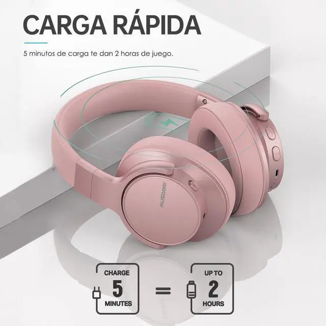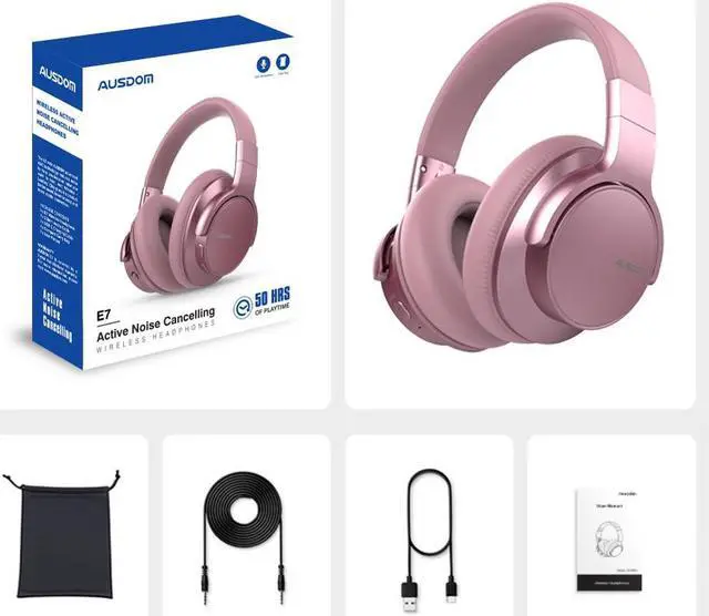 50-Hour Playtime with USB-C Quick Charge: With a built-in 1000mAh Battery, AUSDOM E7 sound cancelling headphones provide up to 35 hours of music playback in noise-canceling mode. In standard mode, the headphones can last for an impressive 50 hours. even if you're in a hurry, a quick 5-minute charge is enough to give you an additional 2 hours of listening time. No need to worry about your wireless headphones powering off mid-flight/mid-trip