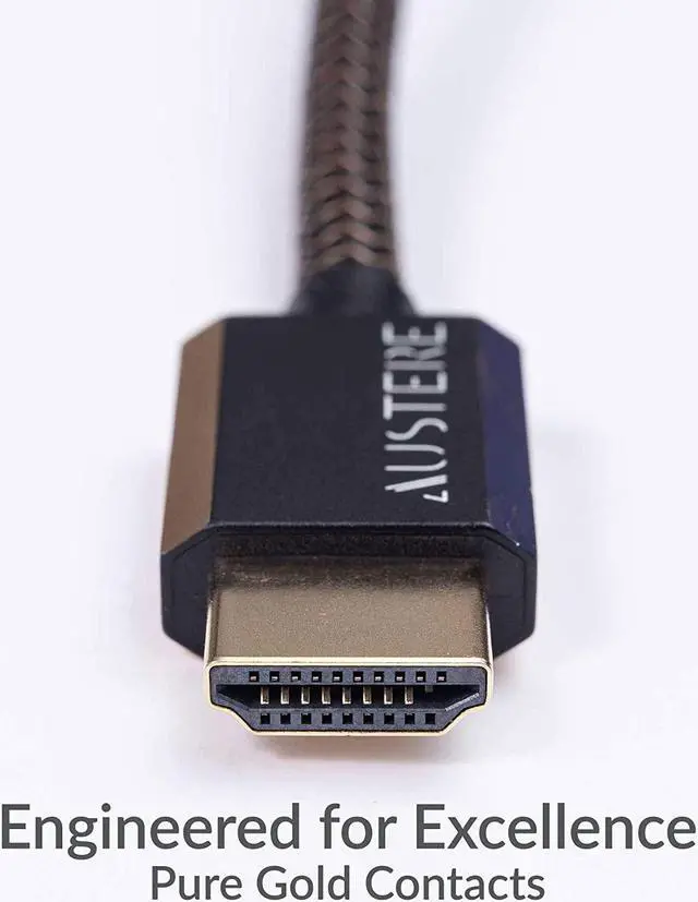 Austere 3S-4KHD2- 2.5M III Series HDMI Cable - Certified Premium Quality - Sleek Design - Kevlar-Reinforced - Proprietary Woven Armor - Flexibility and Strength - Gold Shielded Contacts - 4K HDR - Gaming Device Compatible - Optimizes HD Displays - 18Gbps Bandwidth - 4K60 Frame Rates - High Fidelity ARC for High-Quality Streaming Audio - 2.5 Meter Length - ( 7.40"W x 2.20"D x 7.40"H ) - (Black/Gold)