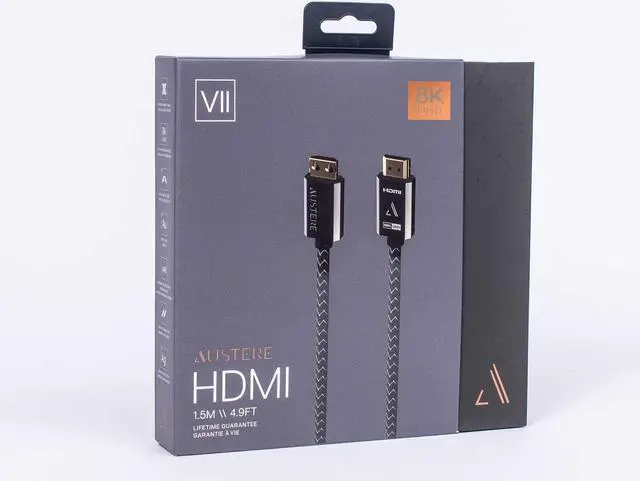 Austere VII Series HDMI 8K cables use state-of-the-art technology to deliver the highest level of performance possible. Austere cables are Kevlar-reinforced and protected by our proprietary WovenArmor constructed for flexibility and strength so confined spaces and tight installations won't impede their efficiency. The all-metal pure endurance gold shielded contacts and LinkFit connector creates a locking fit that ensures a lifetime of unparalleled performance. To upgrade your entertainment experience we support High-Fidelity eARC technology and employ silver-plated conductors to deliver the highest quality audio streaming possible. And the aDesign housing is visually stunning to compliment your home dcor.