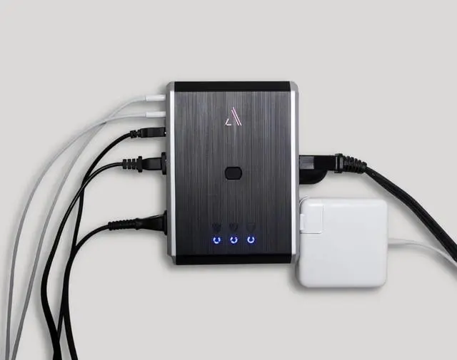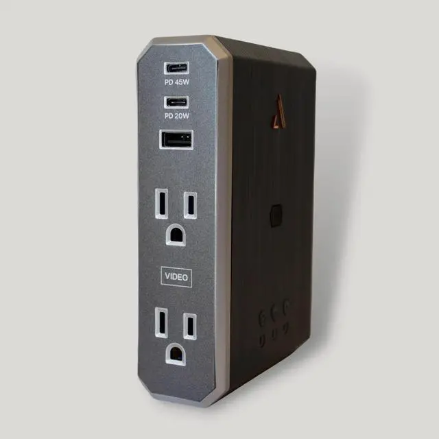 Austere 7S-PS4-US1 Power Outlet - Premium Surge Protection - 4 Outlet Power - 3500J - Type III PureFiltration - Isolated Outlet Filtration - Flameless MOV Protection - Overcurrent Protection - Smartfit Outlets - USB-C 45W Power Delivery - Omniport USB Charge - aDesign Fireproof Enclosure - Component Guarantee - Lifetime Guarantee - ( 5.800"W x 2.500"D x 4.125"H ) - (Black/Silver)