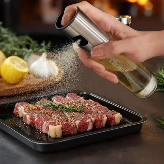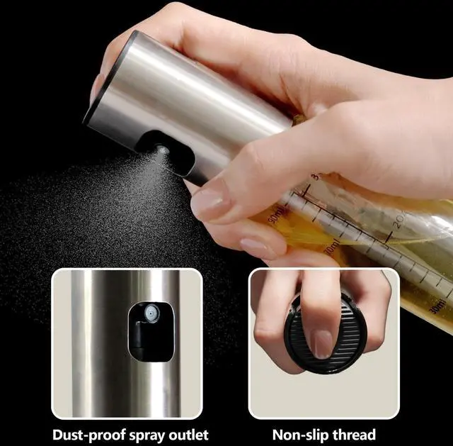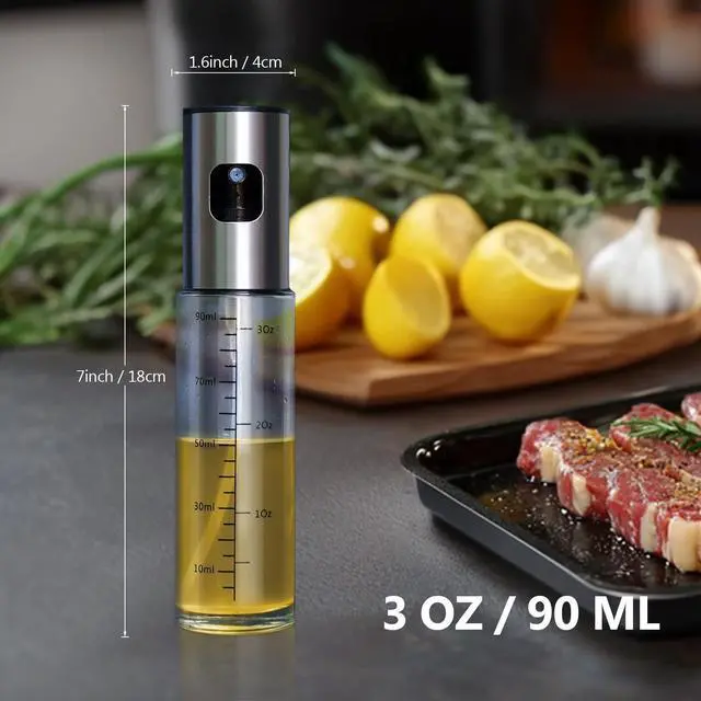 Oil Sprayer for Cooking, 3.5 OZ Olive Oil Dispenser Bottle for Kitchen Gadgets, Food, Air Fryer, Salad, Vinegar, BBQ, Stainless Steel Pump for Mist Spray, Glass Metarial Mister, 100 ML