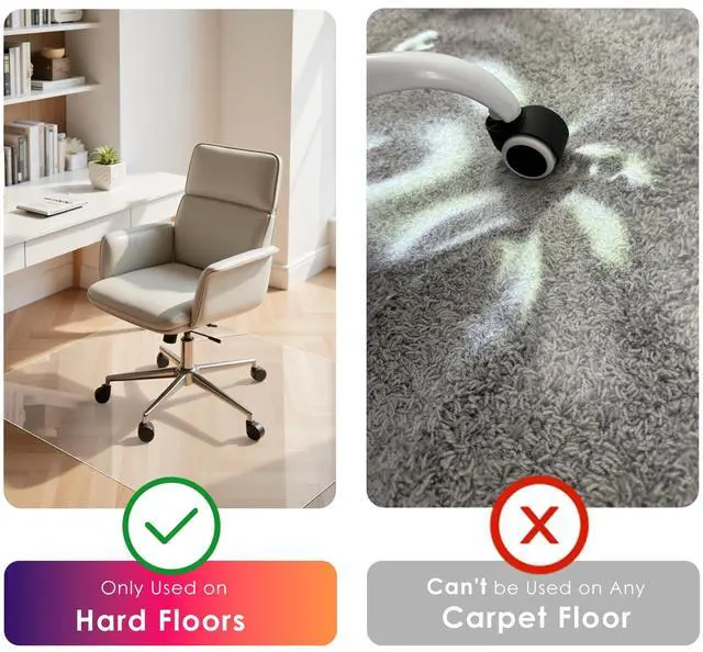 Multipurpose Use: ChairMat, Wood Floor protector,Computer/Office Mat. Suitable for hard floors including vinyl, stone, tile, wood, laminate and concrete. Not recommended for carpet, please see our carpet mat if you need.