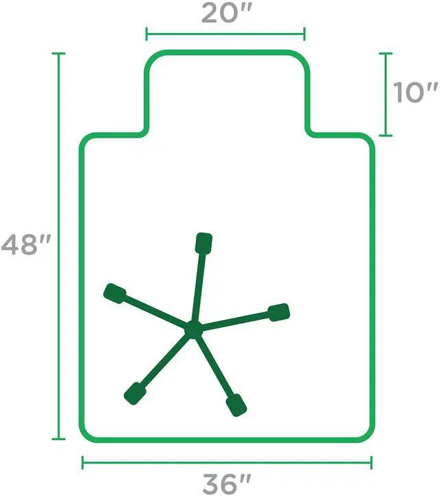 36 x 48 inch chair mat with under-desk lip extension, suitable for small to mid-size office chairs and work areas. Perfect for gaming desks and home offices.