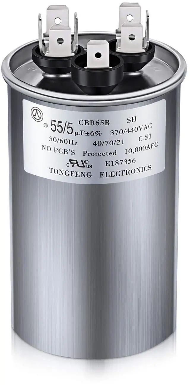 Are you still worried about the air conditioner not cooling? It is time to replace the AC Capacitor. Fiada provides CBB65B Dual Run Round Capacitors with 7 available capacitance to meet different brand air conditioners: 30/5 MFD uF, 40/5 MFD uF, 45/7.5 MFD uF, 50/5 MFD uF, 55/5 MFD uF, 60/5 MFD uF and 70/5 MFD uF.