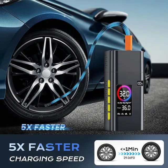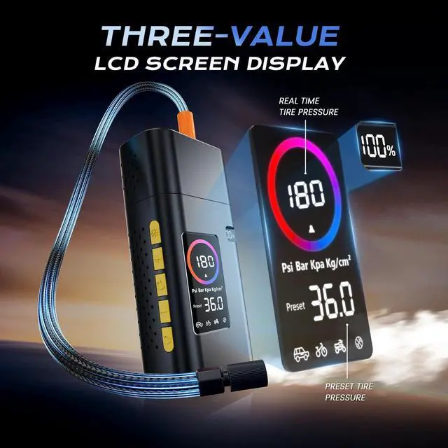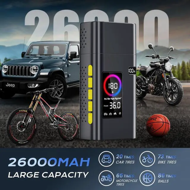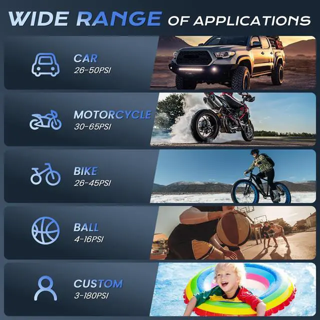Car tires are fully inflated in 5 minutes and 30 seconds, motorcycle tires in 1 minute and 30 seconds, bicycle tires in 1 minute and 20 seconds, and all kinds of balls in 1 minute and 10 seconds.