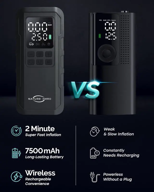 Nature Hero combines innovative technology with high-quality materials to create durable portable electric air pumps. You can enjoy quality assured craftsmanship with safety-enhanced design and stay emergency-ready solution at all times.