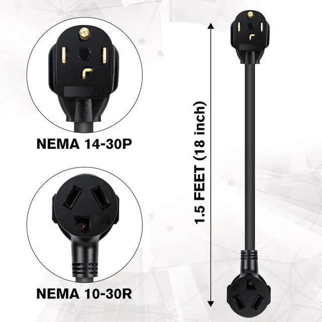 - Dryer plug adapter with NEMA 10-30R and NEMA 14-30P