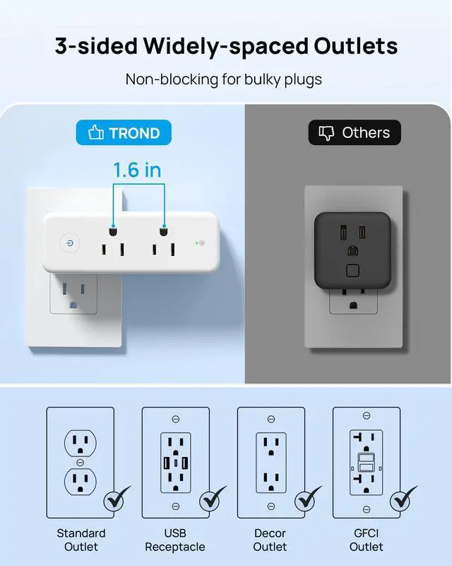 TROND Outlet Extender with 360° Rotating Plug