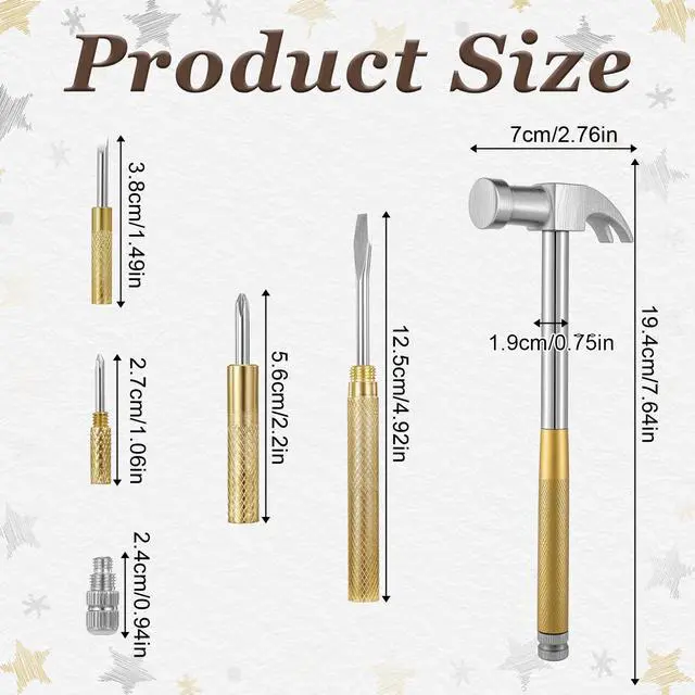 6-in-1 Multi-Tool HammerThis multi-tool set cleverly integrates a claw hammer, two flathead/flathead screwdrivers, two Phillips screwdrivers, and a handle into one convenient and easy-to-organize package to meet your needs
