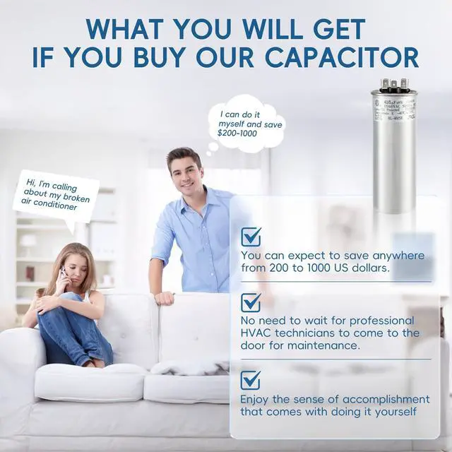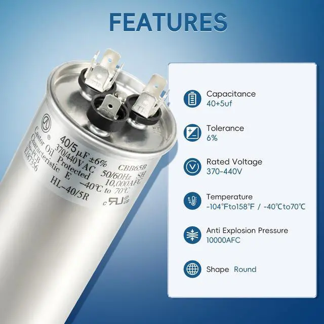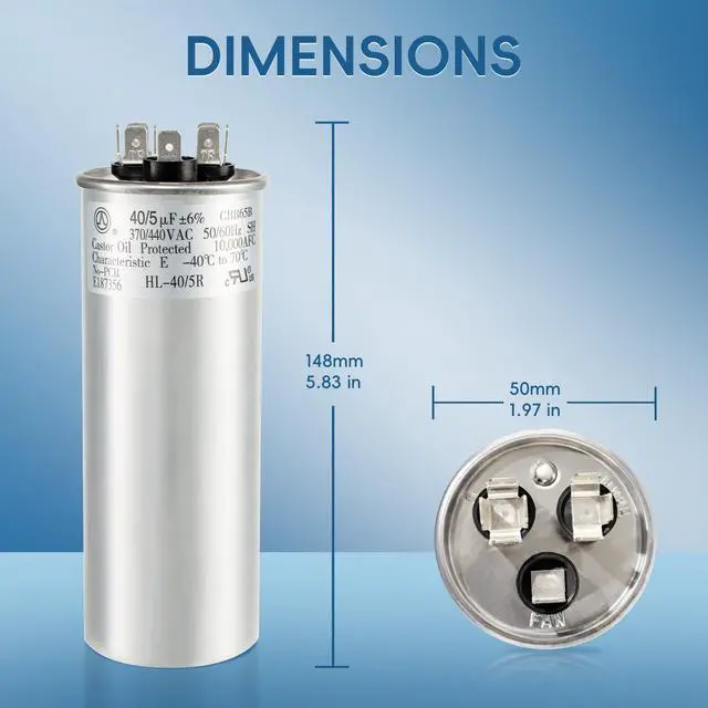 QYCKFIXR AC Capacitor 40+5 uf or 40+5 MFD 440 Volt AC Capacitor. Replaces BOTH 370 VAC & 440 VAC capacitors