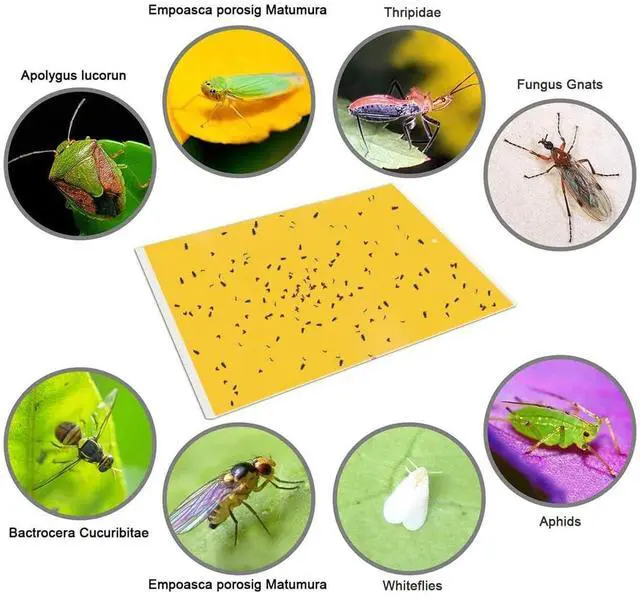 The Yellow sticky traps broadly attract and trap most pests (including Fungus Gnats, White Flies, Fruit flies, Gnats, Mosquitoes, Aphids, Thrips, Leaf Miners, Sciarid Flies, Lepidoptera, Diptera, and other flying plant insects).
