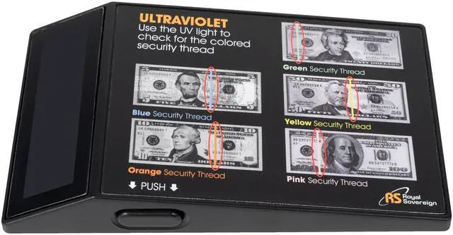 Do you know where all the counterfeit features are on US currency? The RCD-UVP provides the user this information with its convenient currency guide. There is no need to worry about training and retraining employees on how to spot these features as the currency guide shows the user exactly what they need to look for! The RCD-UVP is the complete solution for businesses and organizations that are in a constant fight against counterfeit bills and fake ID’s.