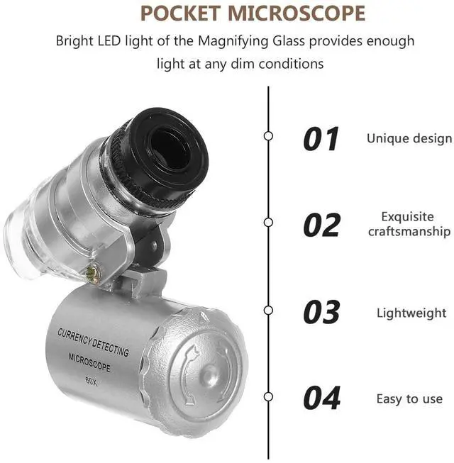 Designed for jewelry professionals and enthusiasts this pocket microscope is suitable for inspecting gemstones coins stamps and other small objects anytime and anywhere