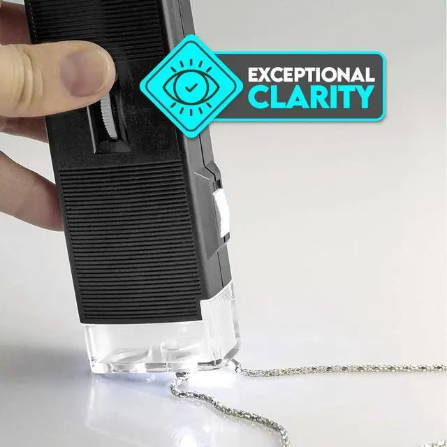 • LED ILLUMINATION - Featuring an energy-efficient LED light source, this pocket microscope ensures that your subjects are well-lit for examination. The LED illumination enhances visibility, making inspecting tiny objects very easy and efficient.