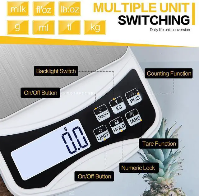 Add ingredients without worrying about spills, and the food scale is easy to clean.