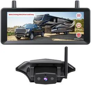 AUTO-VOX Wireless RV Backup Camera: 30Min Plug and Play Setup, Smooth Live View Even Past 60ft, 7.2" 1080P DVR Monitor, Super IR Night Vision Back up Camera Works with Pre-Wired RV, 5th Wheel, Trailer