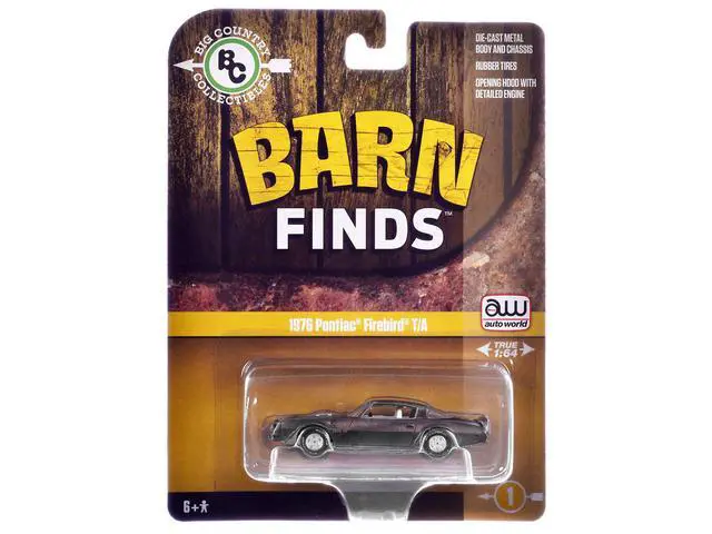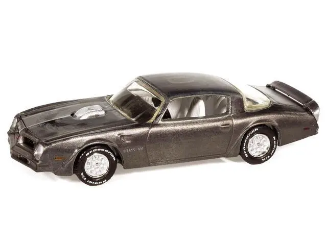 Brand new 1/64 scale diecast car model of 1976 Pontiac Firebird T/A "Barn Finds" Gray Metallic (Weathered) with White Interior "Big Country Collectibles" 2025 Series die cast model car by Auto World.