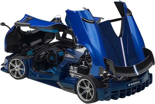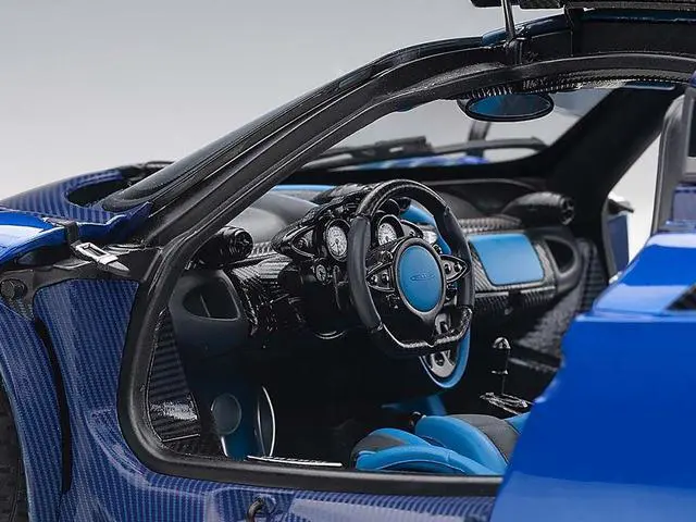 Brand new 1/18 scale car model of Pagani Huayra BC Blu Francia / Candy Blue Metallic with Carbon Accents model car by Autoart.