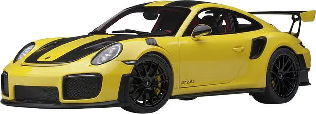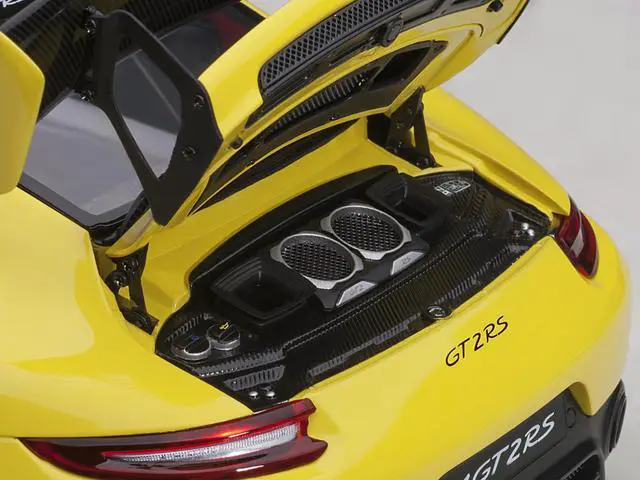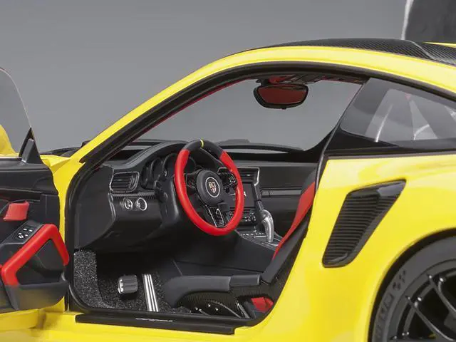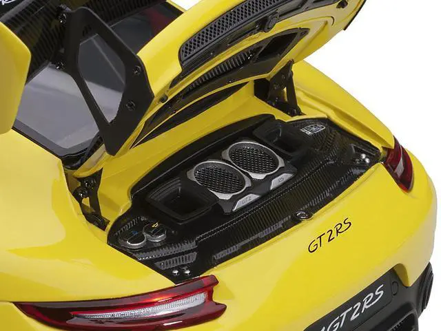 Brand new 1/18 scale car model of Porsche 911 ( 991.2 ) GT2 RS Weissach Package Racing Yellow with Carbon Stripes model car by Autoart.