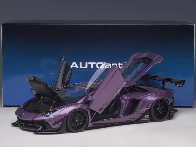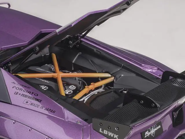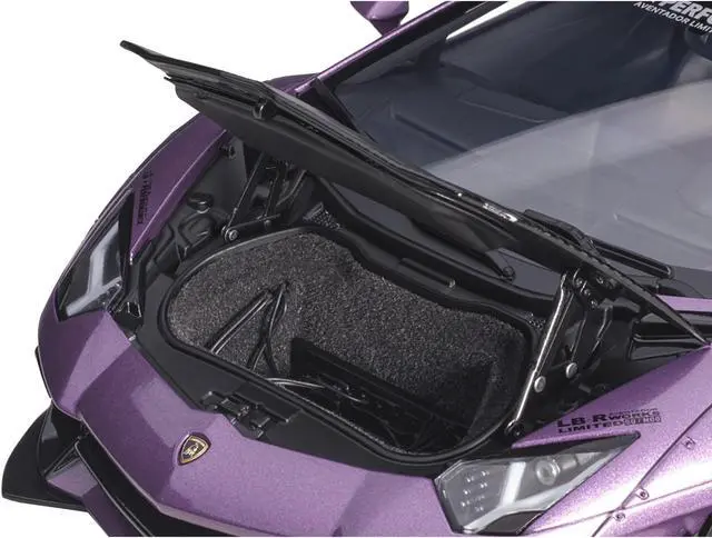 Brand new 1/18 scale model car of Lamborghini Aventador Liberty Walk LB-Works Viola SE30 Purple Metallic with Carbon Hood Limited Edition model car by Autoart.
