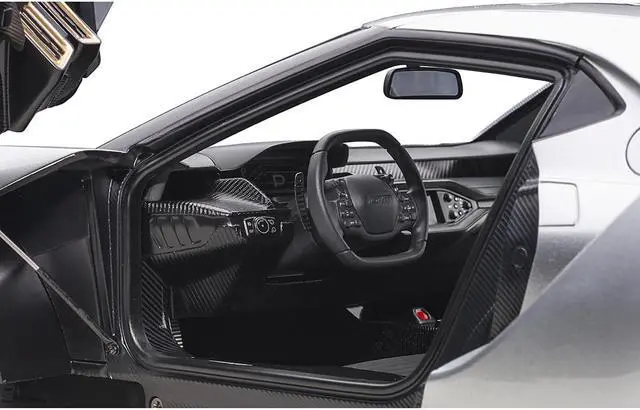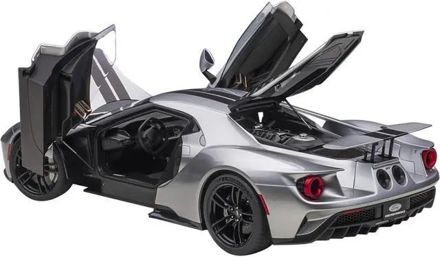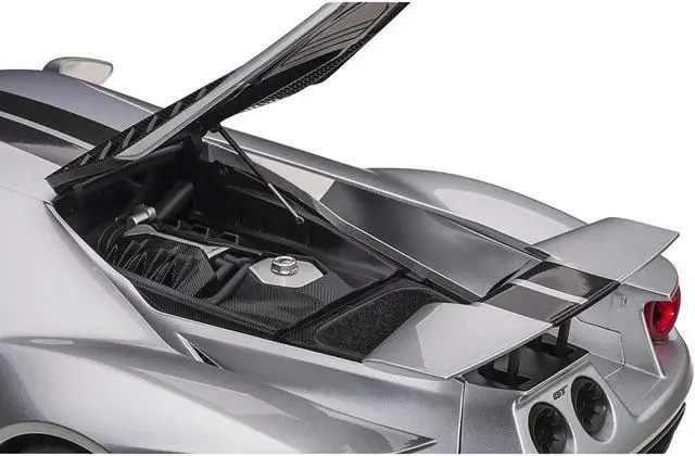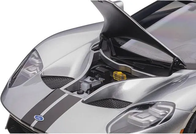Brand new 1/12 scale car model of 2017 Ford GT Ingot Silver Metallic with Black Stripes model car by Autoart.