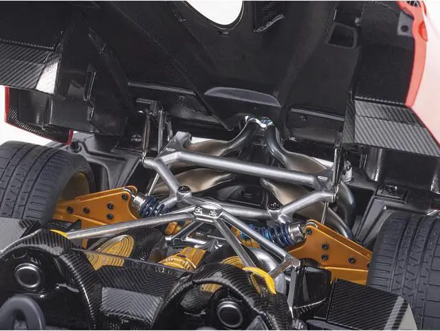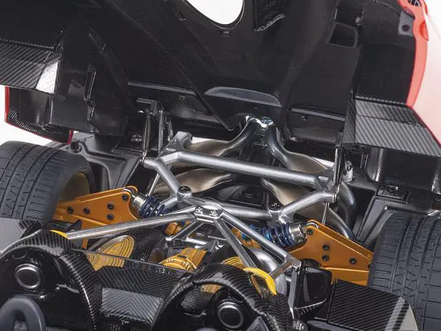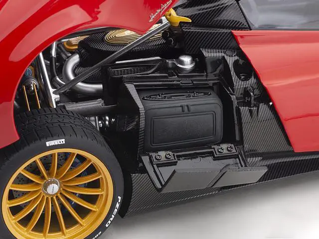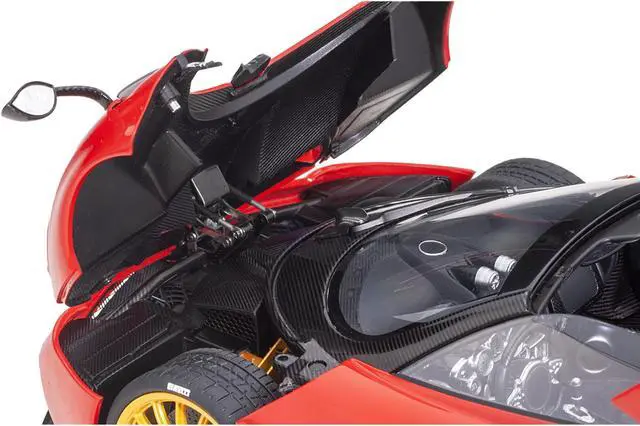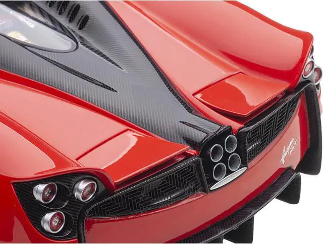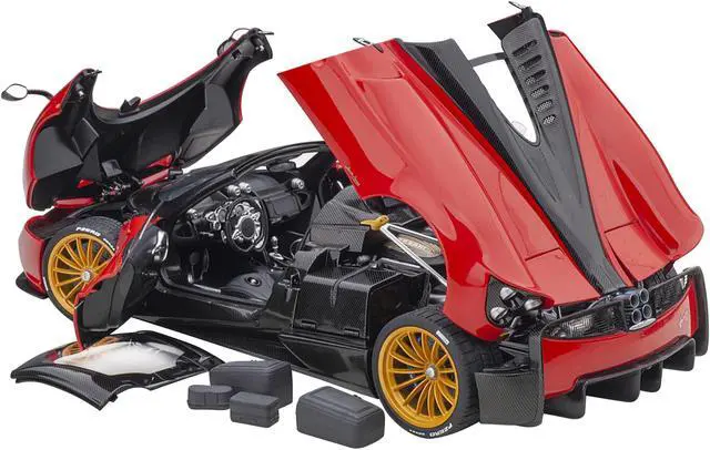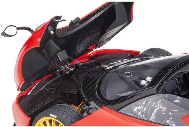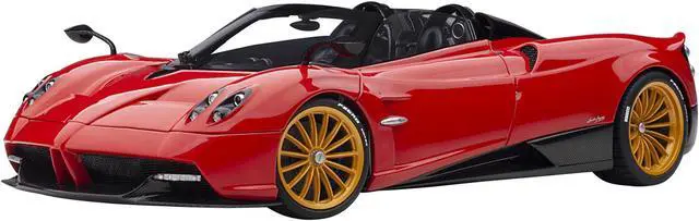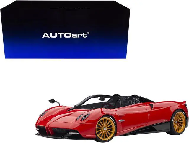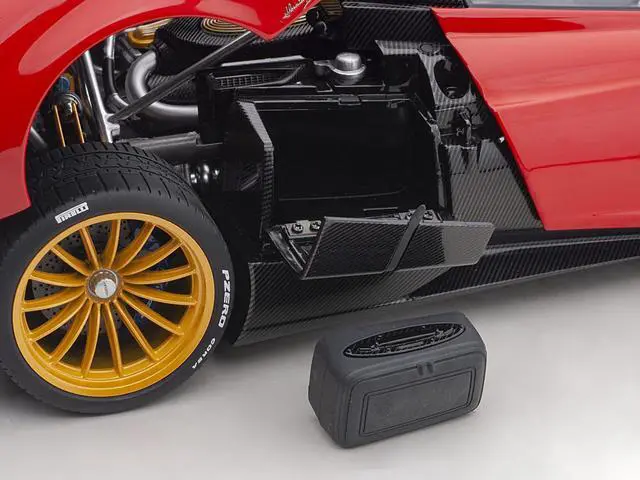 Brand new 1/18 scale car model of Pagani Huayra Roadster Rosso Monza Red and Carbon with Luggage Set model car by Autoart.