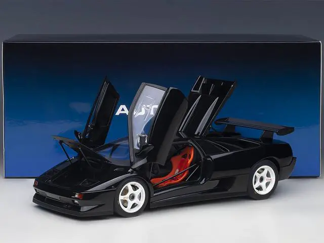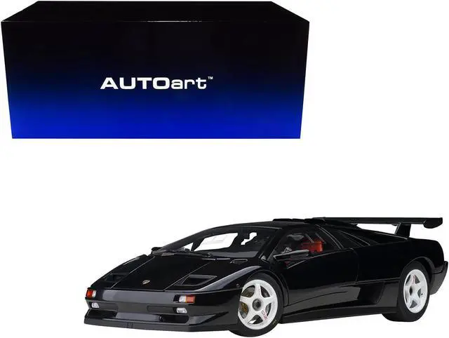 Brand new 1/18 scale car model of Lamborghini Diablo SV-R Deep Black model car by Autoart.