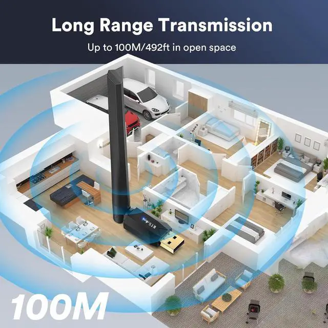 USB Bluetooth 5.4 Adapter for PC, USB Bluetooth Dongle 5.4 EDR Adapter for Laptop Keyboard Mouse Headsets Speakers, Long Range 492ft/150M Bluetooth Adapter Supports Windows 11/10/ 8.1 (Plug and Play)