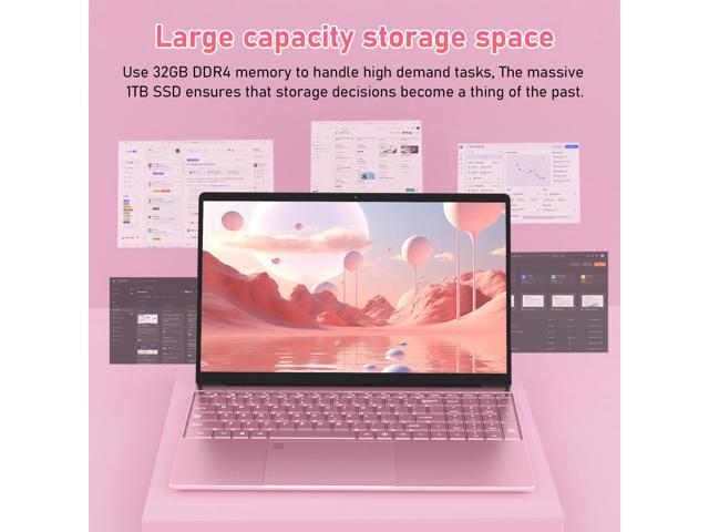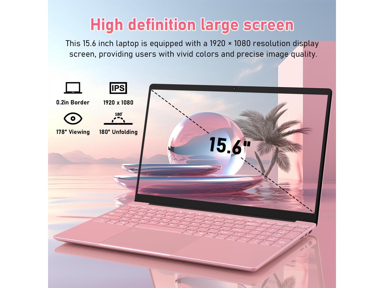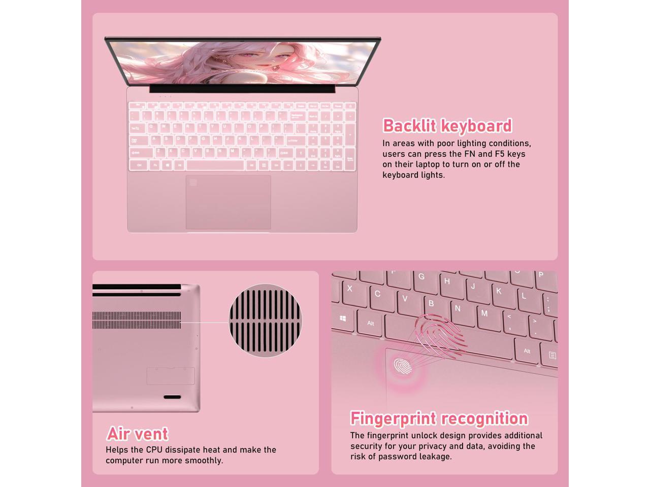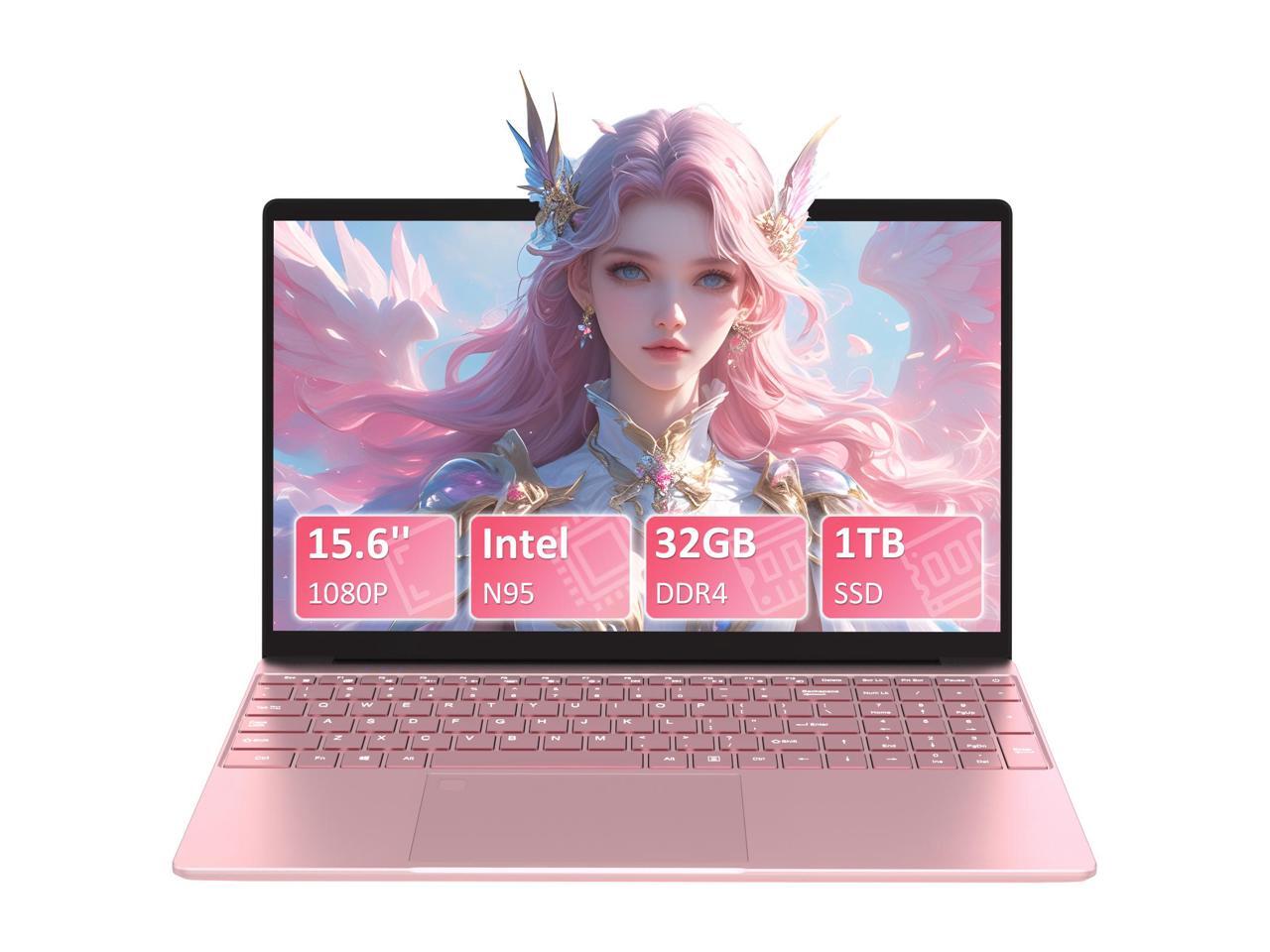 Auusda Business Laptop, 32GB RAM 1TB SSD, Windows 11 Pro Home Computer, 15.6" 1920 x 1080 Screen, Intel N95 CPU, Backlight Keyboard, Fingerprint Reader, Pink