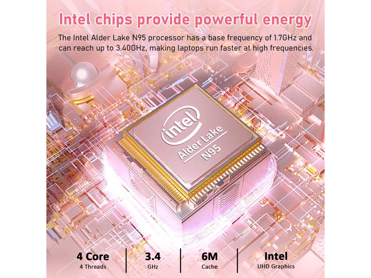 - 11th generation Intel Alder N95 processor, up to 3.4 GHz CPU, 4 cores, 4 threads, 6MB Cache, and Intel UHD Graphics